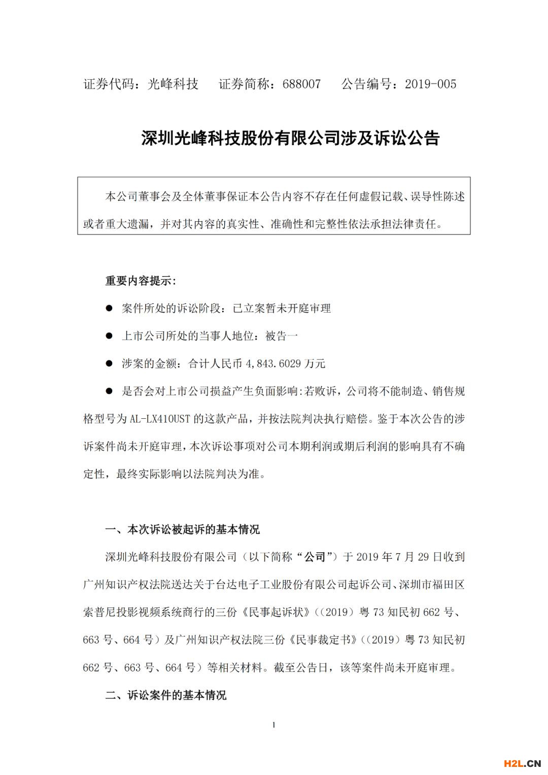 然而,上市才不到一周時(shí)間,一則訴訟就把光峰科技推到了風(fēng)口浪尖。
