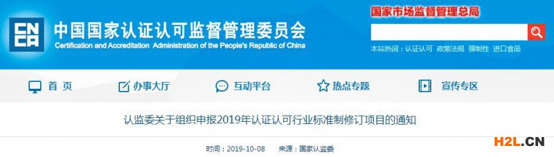 認(rèn)監(jiān)委關(guān)于組織申報2019年認(rèn)證認(rèn)可行業(yè)標(biāo)準(zhǔn)制修訂項目的通知