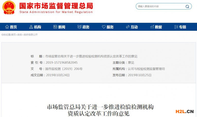 今天,市場(chǎng)監(jiān)管總局官網(wǎng)發(fā)布關(guān)于進(jìn)一步推進(jìn)檢驗(yàn)檢測(cè)機(jī)構(gòu)資質(zhì)認(rèn)定改革工作的意見(jiàn)。意見(jiàn)明確,在檢驗(yàn)檢測(cè)機(jī)構(gòu)資質(zhì)認(rèn)定工作中,對(duì)于檢驗(yàn)檢測(cè)機(jī)構(gòu)能夠自我承諾符合告知的法定資質(zhì)認(rèn)定條件,市場(chǎng)監(jiān)管總局和省級(jí)市場(chǎng)監(jiān)管部門通過(guò)事中事后予以核查糾正的許可事項(xiàng),采取告知承諾方式實(shí)施資質(zhì)認(rèn)定。具體工作按照國(guó)務(wù)院有關(guān)要求和市場(chǎng)監(jiān)管總局制定的《檢驗(yàn)檢測(cè)機(jī)構(gòu)資質(zhì)認(rèn)定告知承諾實(shí)施辦法(試行)》實(shí)施。實(shí)施辦法全文如下: