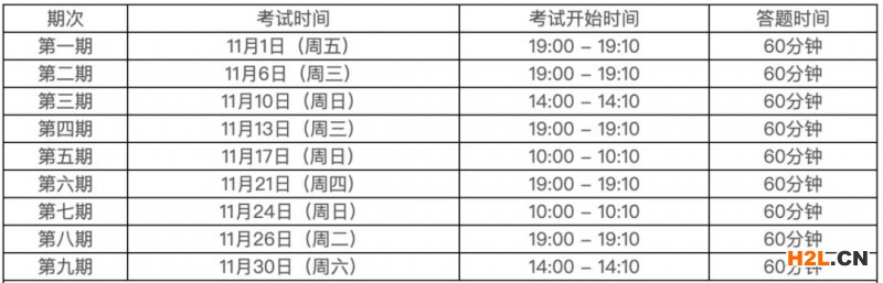 考試在整個(gè)11月份分9個(gè)期次進(jìn)行考試,報(bào)名成功評審員可自行選擇期次進(jìn)行考試。具體開始時(shí)間如下: