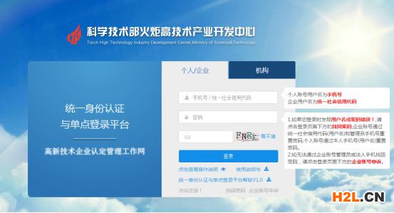 3、登錄:用申報(bào)高企時(shí)的用戶名和密碼登錄(統(tǒng)一社會(huì)信用代碼+密碼);