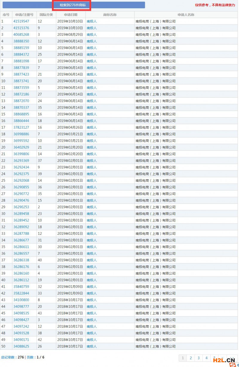 而南極電商共申請(qǐng)了包含“南極人”字樣的商標(biāo)276件。