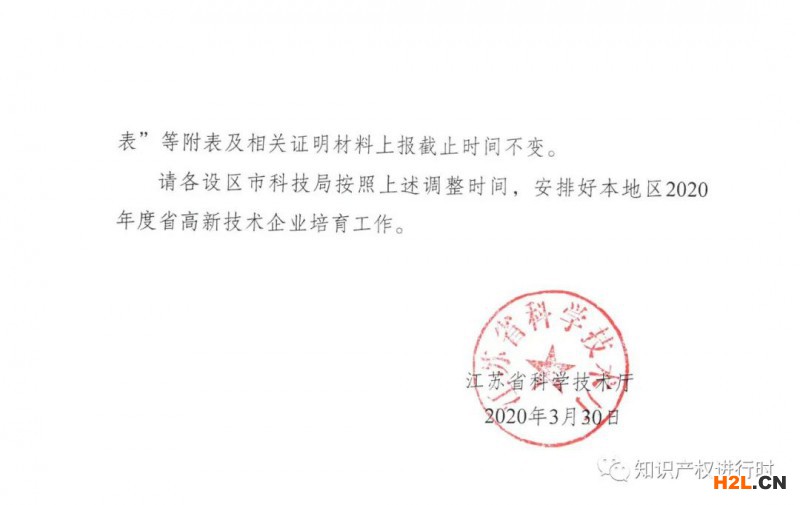 江蘇省科技廳推遲2020年度省高新技術(shù)企業(yè)培育工作上報(bào)時(shí)間的通知