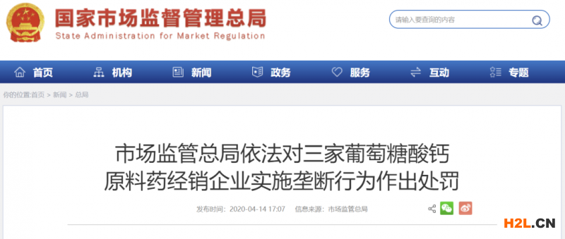 核心提示:近日,市場監(jiān)管總局依據(jù)《反壟斷法》查處一起重大典型的原料藥領(lǐng)域濫用市場支配地位案件,對3家葡萄糖酸鈣原料藥經(jīng)銷企業(yè)實施壟