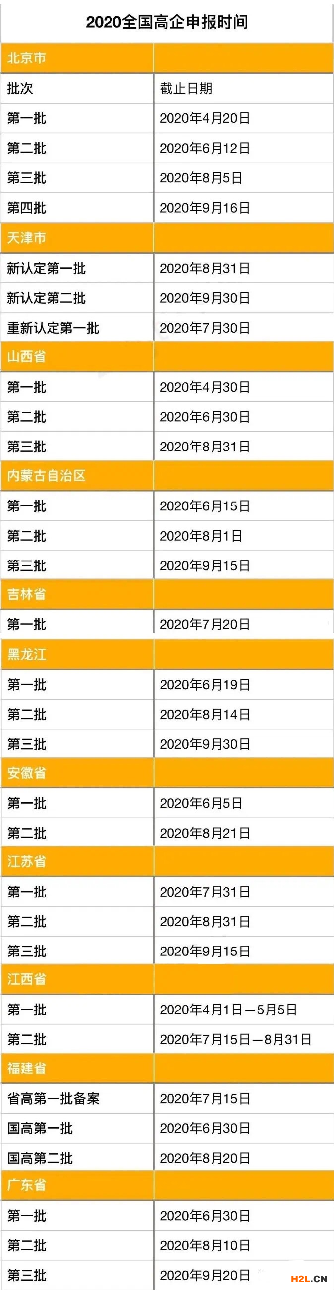 2020年高新技術(shù)企業(yè)申報(bào)時(shí)間表(部分省市)