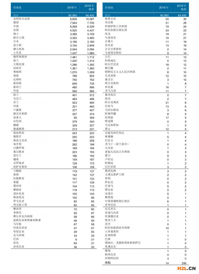 2019年通過馬德里體系提交的國際商標(biāo)申請量情況