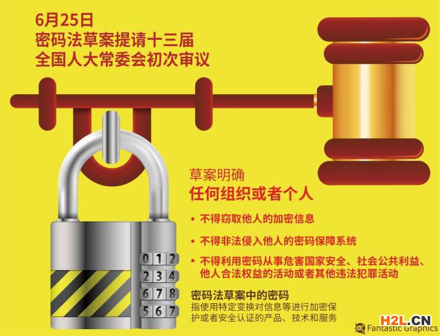6月25日,第十三屆全國(guó)人大常委會(huì)第十一次會(huì)議首次聽(tīng)取國(guó)務(wù)院關(guān)于提請(qǐng)審議密碼法(草案)的議案的說(shuō)明。這意味著密碼法快要來(lái)了。而密碼法(草案)(以下簡(jiǎn)稱草案)中的“密碼”,是指使用特定變換對(duì)信息等進(jìn)行加密保護(hù)或者安全認(rèn)證的產(chǎn)品、技術(shù)和服務(wù)。草案確定,列入網(wǎng)絡(luò)關(guān)鍵設(shè)備的商用密碼產(chǎn)品或?qū)?shí)行強(qiáng)制性檢測(cè)認(rèn)證。