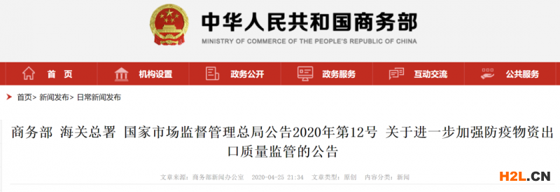 關于進一步加強防疫物資出口質量監(jiān)管的公告