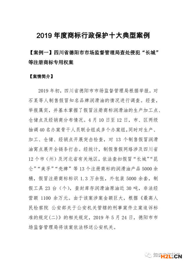 國知局發(fā)布:2019年度知識(shí)產(chǎn)權(quán)行政保護(hù)典型案例(專利+商標(biāo))