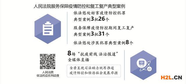面對突如其來的疫情,最高人民法院堅決貫徹習(xí)近平總書記重要指示精神和黨中央決策部署,在中央政法委領(lǐng)導(dǎo)下,認(rèn)真落實依法防控要求,單獨或會同有關(guān)單位制定依法懲治妨害疫情防控犯罪、懲治妨害國境衛(wèi)生檢疫犯罪、保障復(fù)工復(fù)產(chǎn)等意見,完善服務(wù)“六穩(wěn)”“六保”司法舉措,發(fā)布57個懲處涉疫犯罪和服務(wù)復(fù)工復(fù)產(chǎn)典型案例,努力為抗疫護航、為大局服務(wù)。各級法院統(tǒng)籌做好疫情防控和維護穩(wěn)定等工作,審結(jié)各類涉疫案件2736件,促進涉疫矛盾糾紛源頭預(yù)防化解;嚴(yán)懲侵害醫(yī)務(wù)工作者人身安全和人格尊嚴(yán)犯罪,保護抗疫中負(fù)重前行的“最美逆行者”;堅持審慎善意文明司法,積極為中小微企業(yè)紓困解難;運用遠(yuǎn)程立案、網(wǎng)上審判、智慧執(zhí)行及時定分止?fàn)?。智慧法院在疫情防控期間“大顯身手”,全國法院網(wǎng)上立案136萬件、開庭25萬次、調(diào)解59萬次,電子送達446萬次,網(wǎng)絡(luò)查控266萬件,司法網(wǎng)拍成交額639億元,執(zhí)行到位金額2045億元。廣大法院干警特別是湖北和武漢法院干警堅決響應(yīng)黨中央號召,積極投身各地抗疫一線,為統(tǒng)籌推進疫情防控和經(jīng)濟社會發(fā)展工作提供了司法服務(wù)和保障,體現(xiàn)了忠于黨、忠于國家、忠于人民、忠于法律的政治本色。