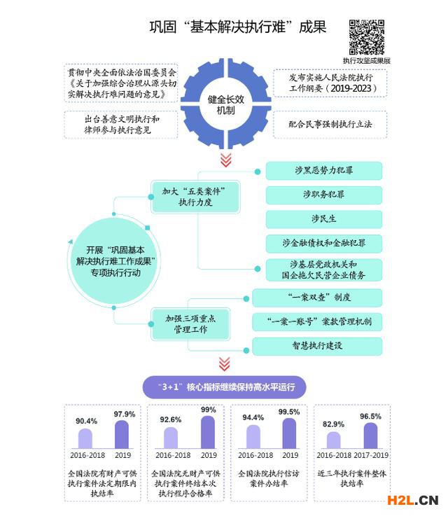 如期實現(xiàn)“基本解決執(zhí)行難”目標(biāo)之后,人民法院咬定青山不放松,不斷鞏固“基本解決執(zhí)行難”成果。2019年,全國法院共受理執(zhí)行案件1041.4萬件,執(zhí)結(jié)954.7萬件,執(zhí)行到位金額1.7萬億元,同比分別上升17.4%、22.4%和10.8%,各項執(zhí)行指標(biāo)穩(wěn)中有進,中國特色執(zhí)行制度、機制和模式的優(yōu)勢更加顯現(xiàn)。