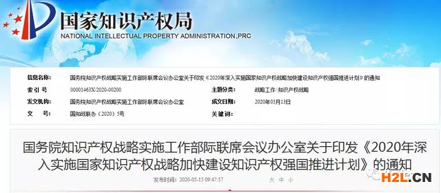 關(guān)于印發(fā)《2020年深入實(shí)施國(guó)家知識(shí)產(chǎn)權(quán)戰(zhàn)略加快建設(shè)知識(shí)產(chǎn)權(quán)強(qiáng)國(guó)推進(jìn)計(jì)劃》的通知
