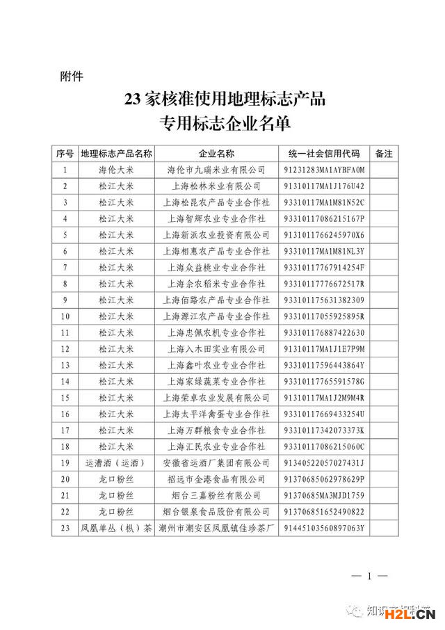 附件:23家核準使用地理標志產(chǎn)品專用標志企業(yè)名單