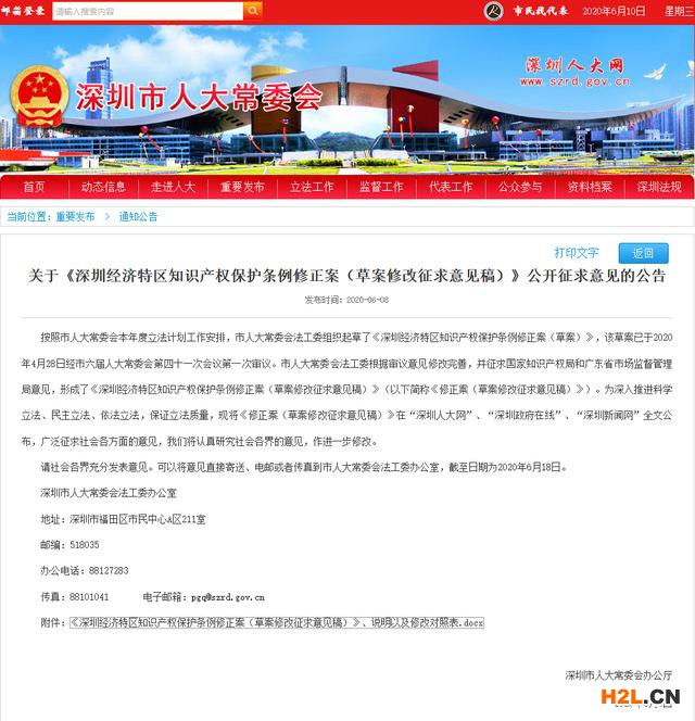 關(guān)于《深圳經(jīng)濟(jì)特區(qū)知識(shí)產(chǎn)權(quán)保護(hù)條例修正案(草案修改征求意見(jiàn)稿)》公開(kāi)征求意見(jiàn)的公告