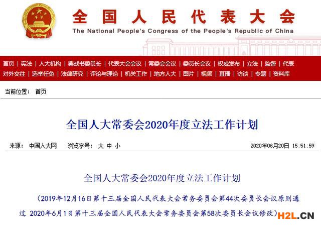 全國人大常委會(huì)2020年度立法工作計(jì)劃