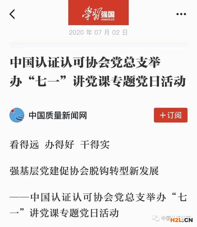 為隆重慶祝中國(guó)共產(chǎn)黨建黨99周年,中國(guó)認(rèn)證認(rèn)可協(xié)會(huì)黨總支于7月1日舉辦領(lǐng)導(dǎo)班子講黨課專題黨日活動(dòng)?;顒?dòng)當(dāng)天,協(xié)會(huì)官網(wǎng)及微信公眾號(hào)進(jìn)行了相關(guān)報(bào)道,“學(xué)習(xí)強(qiáng)國(guó)”及中國(guó)質(zhì)量新聞網(wǎng)也對(duì)此次活動(dòng)予以關(guān)注和報(bào)道。