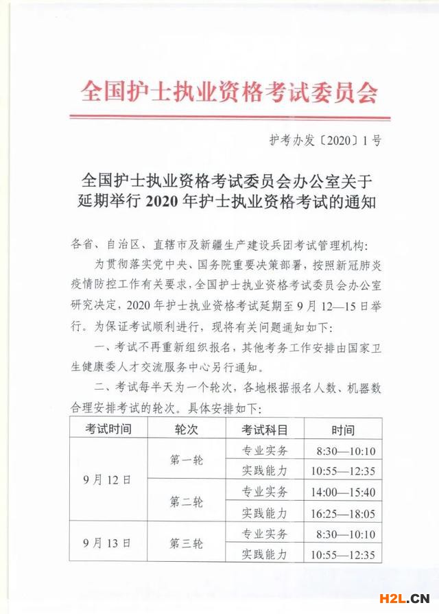 6月1日,全國護士執(zhí)業(yè)資格考試委員會辦公室印發(fā)《關(guān)于延期舉行2020年護士執(zhí)業(yè)資格考試的通知》,2020年護士執(zhí)業(yè)資格考試延期至9月12—15 日舉行。