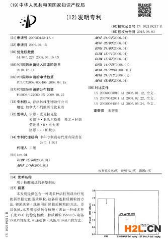 美國(guó)生物技術(shù)公司Arbutus是這項(xiàng)技術(shù)的專利權(quán)人,持有的美國(guó)專利為US8058069B2,發(fā)明名稱為“用于核算遞送的新型制劑”,該專利在中國(guó)也獲得了授權(quán),授權(quán)公開號(hào)為CN102119217B。