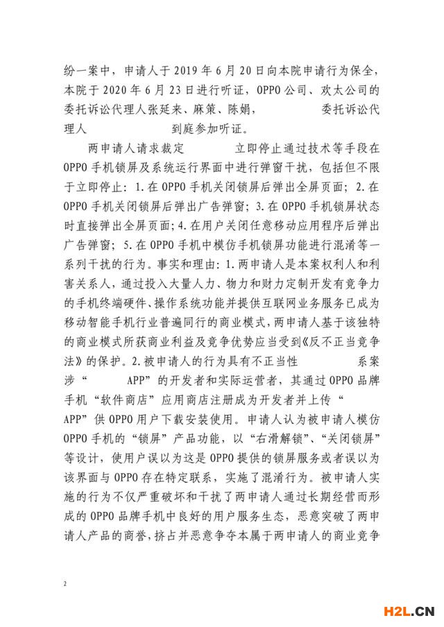 近日,杭州鐵路運(yùn)輸法院(杭州互聯(lián)網(wǎng)法院)就申請(qǐng)人OPPO廣東移動(dòng)通信有限公司、廣東歡太科技有限公司和被申請(qǐng)人某某信息科技公司不正當(dāng)競爭糾紛一案,作出行為保全裁定,裁定被申請(qǐng)人某某信息科技公司立即停止在OPPO手機(jī)解開鎖屏后彈出全屏頁面、在用戶關(guān)閉任意移動(dòng)應(yīng)用程序后彈出廣告彈窗、在OPPO手機(jī)中模仿手機(jī)鎖屏功能的行為。