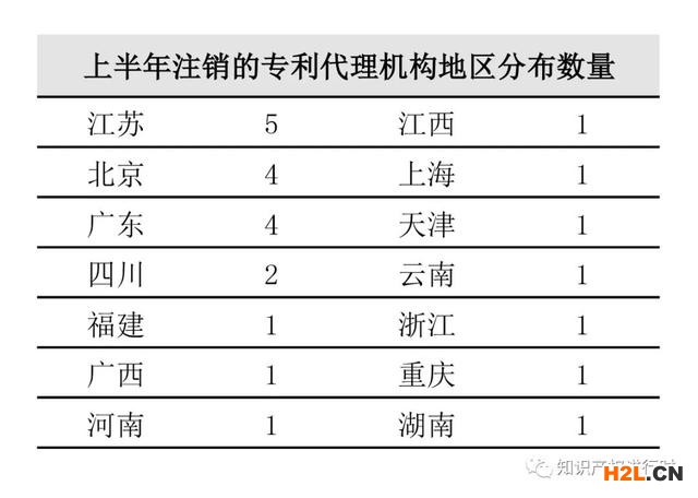 這些注銷的專利代理機(jī)構(gòu)中,江蘇、北京、廣東占半數(shù)以上。