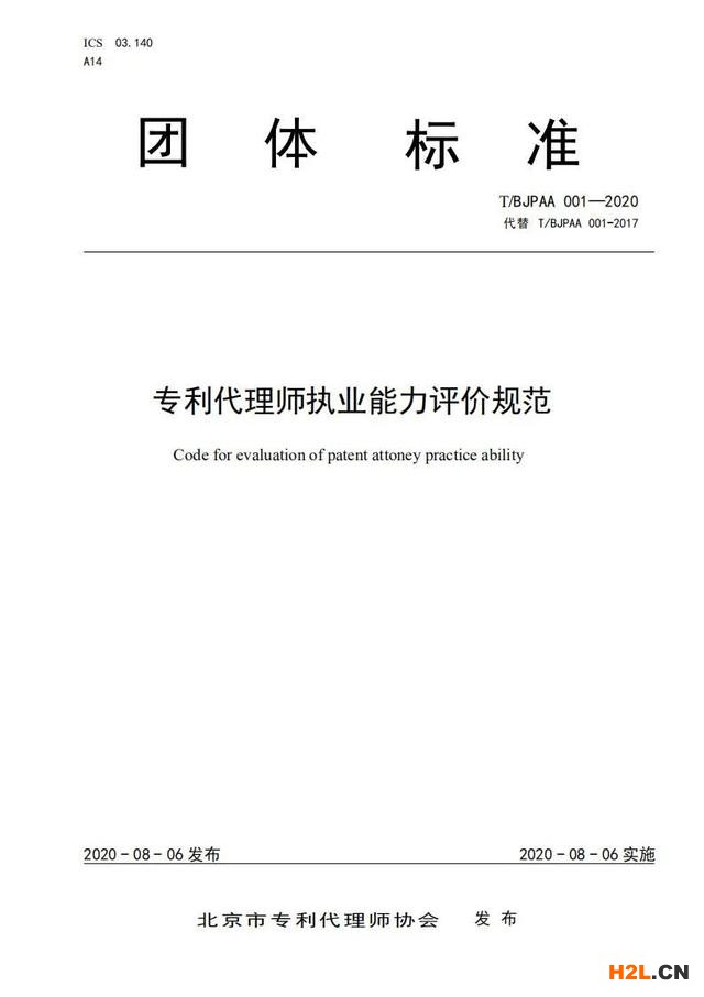 專利代理人執(zhí)業(yè)能力評價規(guī)范》(T/BJPAA 001-2017)(以下簡稱“《評價規(guī)范》”)。為保障標(biāo)準(zhǔn)的合規(guī)性和先進(jìn)性,我會于2020年2月啟動了《評價規(guī)范》團體標(biāo)準(zhǔn)的修訂工作。本團體標(biāo)準(zhǔn)的修訂嚴(yán)格按照《北京市專利代理師協(xié)會標(biāo)準(zhǔn)制定管理辦法》規(guī)定和要求進(jìn)行,經(jīng)過標(biāo)準(zhǔn)立項、草案形成及討論、標(biāo)準(zhǔn)征求意見稿發(fā)布并廣泛征求建議、專家論證和標(biāo)準(zhǔn)化工作委員會審查等多個環(huán)節(jié),最終完成了“評價規(guī)范”的修訂。經(jīng)二屆三十九次理事會、監(jiān)事會暨二屆三十七次常務(wù)理事會審議通過,形成《專利代理師執(zhí)業(yè)能力評價規(guī)范》(T/BJPAA 001-2020),現(xiàn)正式對外發(fā)布。