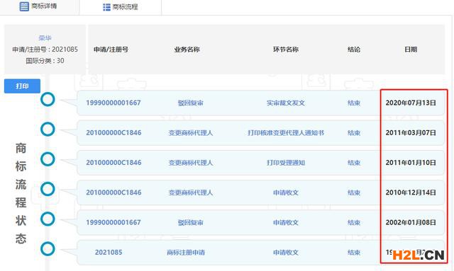 在最近的時間里,2020年7月14日,榮華餅家申請了兩件第32類“榮華”商標(biāo)。