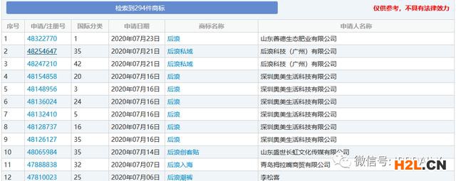 而“后浪”被申請(qǐng)注冊(cè)商標(biāo)其實(shí)并不算什么新鮮事兒,因?yàn)槌嗽獨(dú)馍种?,申?qǐng)“后浪”相關(guān)商標(biāo)的企業(yè)不在少數(shù)。