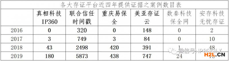 目前市場上分布全國的各類電子證據(jù)平臺(tái)超過100家,包括主要的互聯(lián)網(wǎng)公司也推出有電子證據(jù)工具,但目前司法實(shí)踐當(dāng)中常見的依然主要集中在四個(gè)主要平臺(tái),占電子證據(jù)類司法判決數(shù)量的95%以上,包括聯(lián)合信任時(shí)間戳、真相科技IP360、美亞存證云、重慶易保全等