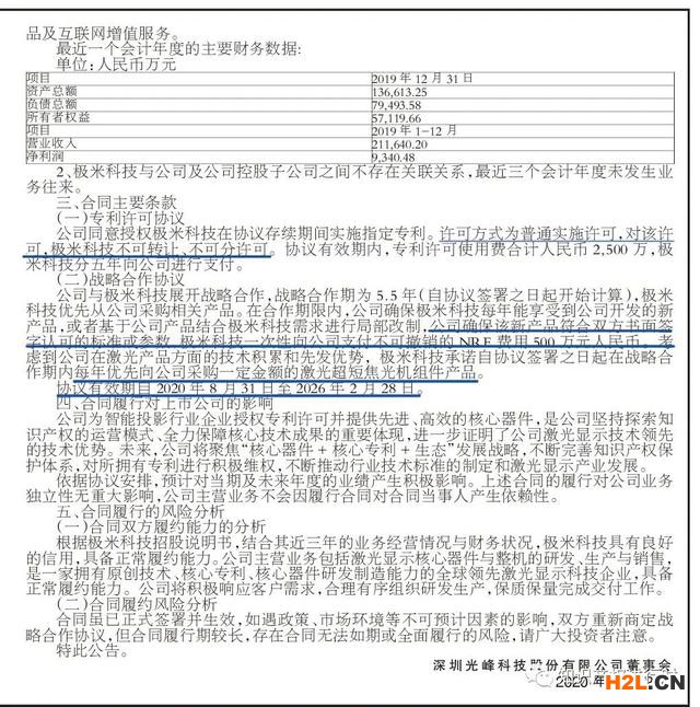 9月2日,光峰科技發(fā)布《深圳光峰科技股份有限公司關(guān)于公司與極米科技簽署專利許可協(xié)議暨戰(zhàn)略合作協(xié)議的公告》。