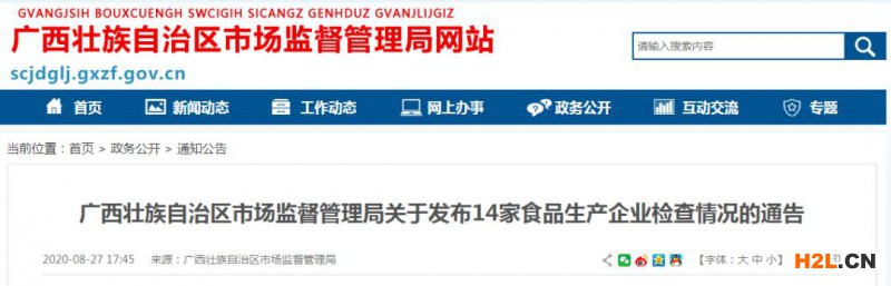 近日,廣西壯族自治區(qū)市場監(jiān)督管理局發(fā)布14家食品生產(chǎn)企業(yè)檢查情況的通告,其中包括對四家企業(yè)飛行檢查的情況。針對發(fā)現(xiàn)的問題,該局已要求所在地市場監(jiān)管部門依法處置,督促企業(yè)落實整改,及時對企業(yè)整改情況進行復查,確保企業(yè)整改到位。