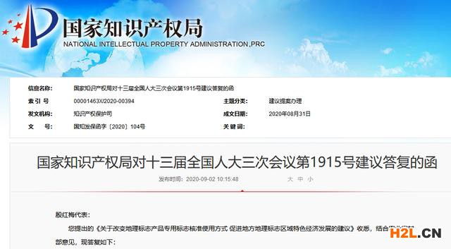 原標題:國家知識產(chǎn)權(quán)局對十三屆全國人大三次會議第1915號建議答復(fù)的函近日,國家知識產(chǎn)權(quán)局發(fā)布對十三屆全國人大三次會議第1915號建議答復(fù)的函。答復(fù)函表示,截至2020年6月底,累計批準地理標志產(chǎn)品2385個,核準使用地理標志產(chǎn)品專用標志企業(yè)8811家,注冊地理標志商標5682件,登記農(nóng)產(chǎn)品地理標志3090個。同時,國家知識產(chǎn)權(quán)局立足職能,主動作為,在推動地理標志統(tǒng)一認定、加強地理標志保護等方面開展了一系列工作。
