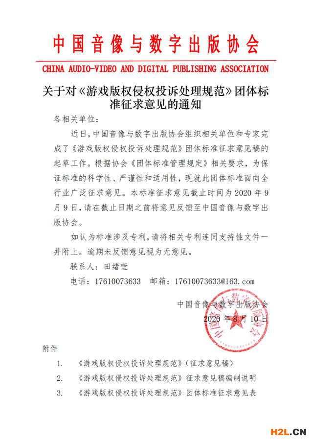 原標(biāo)題:中國(guó)音像與數(shù)字出版協(xié)會(huì)關(guān)于對(duì)《游戲版權(quán)侵權(quán)投訴處理規(guī)范》團(tuán)體標(biāo)準(zhǔn)征求意見(jiàn)的通知