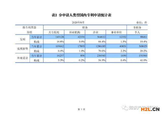 2020年1-8月知識產(chǎn)權(quán)主要統(tǒng)計數(shù)據(jù),實用新型授權(quán)量同比增長45.22%