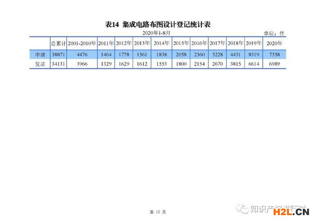 2020年1-8月,我國集成電路布圖設(shè)計登記申請7358件, 發(fā)證6989件。