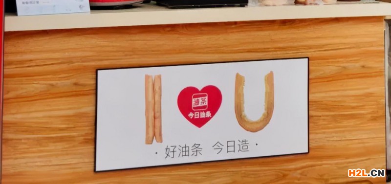 之所以今日油條能火起來,跟店鋪整體的視覺呈現(xiàn)有很大的關系。無論從LOGO設計、廣告語、VI系統(tǒng)到店面裝修,整體撞臉各大知名企業(yè)。