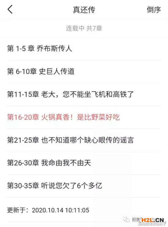 目前,該小說(shuō)已連載 35 章,從標(biāo)題可以看到“喬布斯傳人”、“不能坐飛機(jī)和高鐵”、“欠了 6 個(gè)多億”等與羅永浩關(guān)聯(lián)的信息。