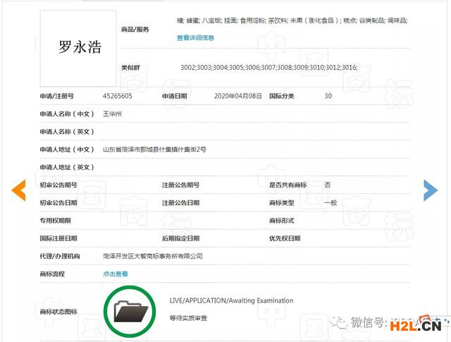 在這期間,也有一些個(gè)人在第29類食品、第30類方便食品、第35類廣告銷售等類別申請(qǐng)了“羅永浩”商標(biāo),目前均處于等待實(shí)質(zhì)審查階段。