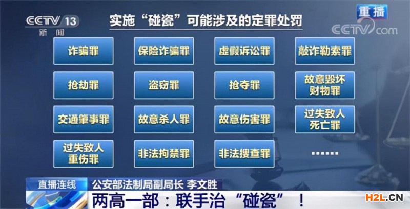 同時,《指導意見》還對實施“碰瓷”構成的犯罪進行了梳理,分類予以明確,并規(guī)定對實施“碰瓷”,尚不構成犯罪,但構成違反治安管理行為的,依法給予治安管理處罰,實現(xiàn)行政執(zhí)法與刑事司法有效銜接。