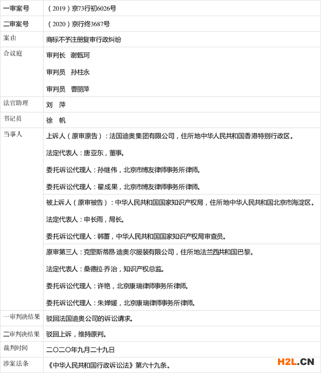 核心提示:法國(guó)迪奧集團(tuán)有限公司商標(biāo)不予注冊(cè)復(fù)審行政糾紛案裁判文書摘要裁判文書中華人民共和國(guó)北京市高級(jí)人民法院行政判決書(2020)京行終3687號(hào)當(dāng)
