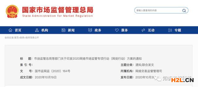 市場監(jiān)管總局:《2020網(wǎng)絡(luò)市場監(jiān)管專項行動 (網(wǎng)劍行動)方案》