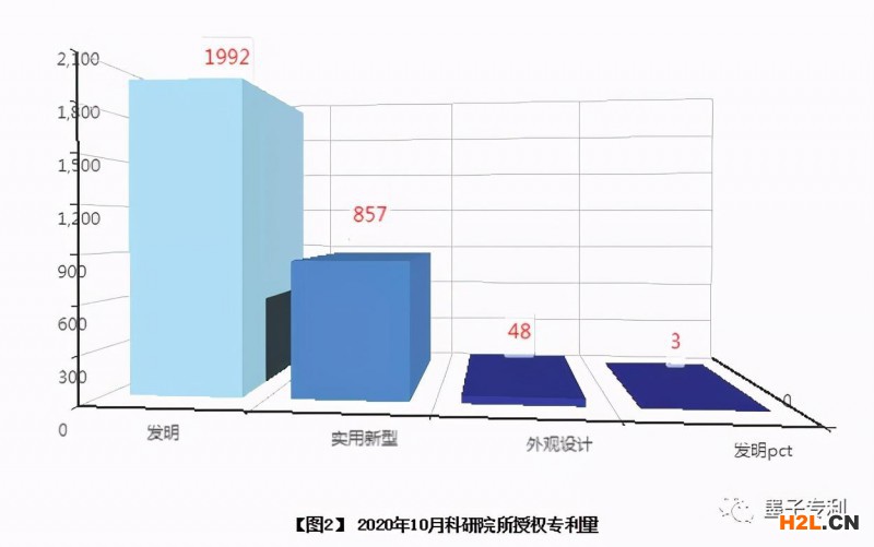 2020年10月科研院所授權(quán)專(zhuān)利 2900 件,如【圖2】所示,其中發(fā)明 1992 件、實(shí)用新型 857 件、外觀設(shè)計(jì) 48 件,PCT專(zhuān)利 3 件,發(fā)明專(zhuān)利占比 68.69% 。
