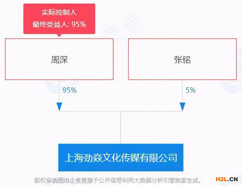 據(jù)了解,上海勁焱文化傳媒有限公司成立于2020年7月,法定代表人為張銘,注冊資本100萬元人民幣,經(jīng)營范圍含廣播電視節(jié)目制作經(jīng)營;演出經(jīng)紀;營業(yè)性演出等。天眼查App股東信息顯示,該公司第一大股東為周深,持股比例為95%。