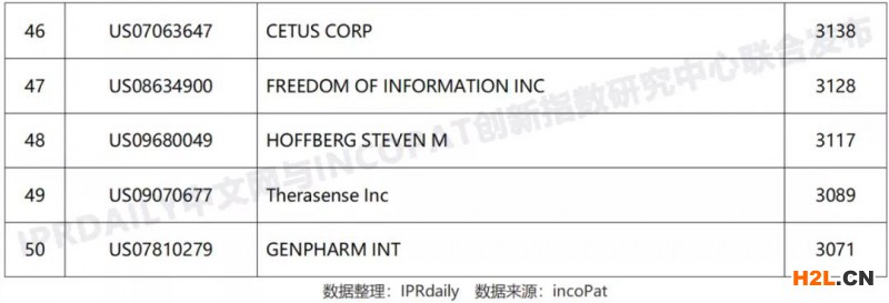 3、全球高被引證發(fā)明授權(quán)專利TOP50