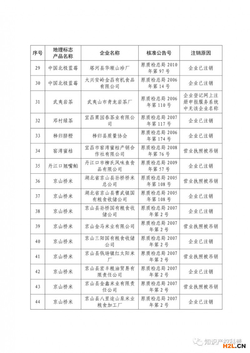 根據(jù)國(guó)務(wù)院《關(guān)于國(guó)務(wù)院機(jī)構(gòu)改革涉及行政法規(guī)規(guī)定的行政機(jī)關(guān)職責(zé)調(diào)整問(wèn)題的決定》,按照原國(guó)家質(zhì)量監(jiān)督檢驗(yàn)檢疫總局《地理標(biāo)志產(chǎn)品保護(hù)規(guī)定》和國(guó)家知識(shí)產(chǎn)權(quán)局《地理標(biāo)志專用標(biāo)志使用管理辦法(試行)》,經(jīng)有關(guān)省級(jí)知識(shí)產(chǎn)權(quán)局審核,并經(jīng)國(guó)家知識(shí)產(chǎn)權(quán)局審查,因企業(yè)已注銷等情形,決定注銷方正縣天龍精米加工廠等70家企業(yè)的地理標(biāo)志專用標(biāo)志使用注冊(cè)登記?,F(xiàn)將名單公布。