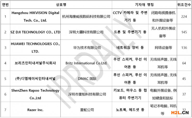MIST列出的被稱為涉嫌偽造KC認(rèn)證的企業(yè)名單中不乏像三星電子、雷蛇、Britz,Joytron、華為、大疆靈眸、海康威視、大華視覺(jué)這樣的知名企業(yè)。
