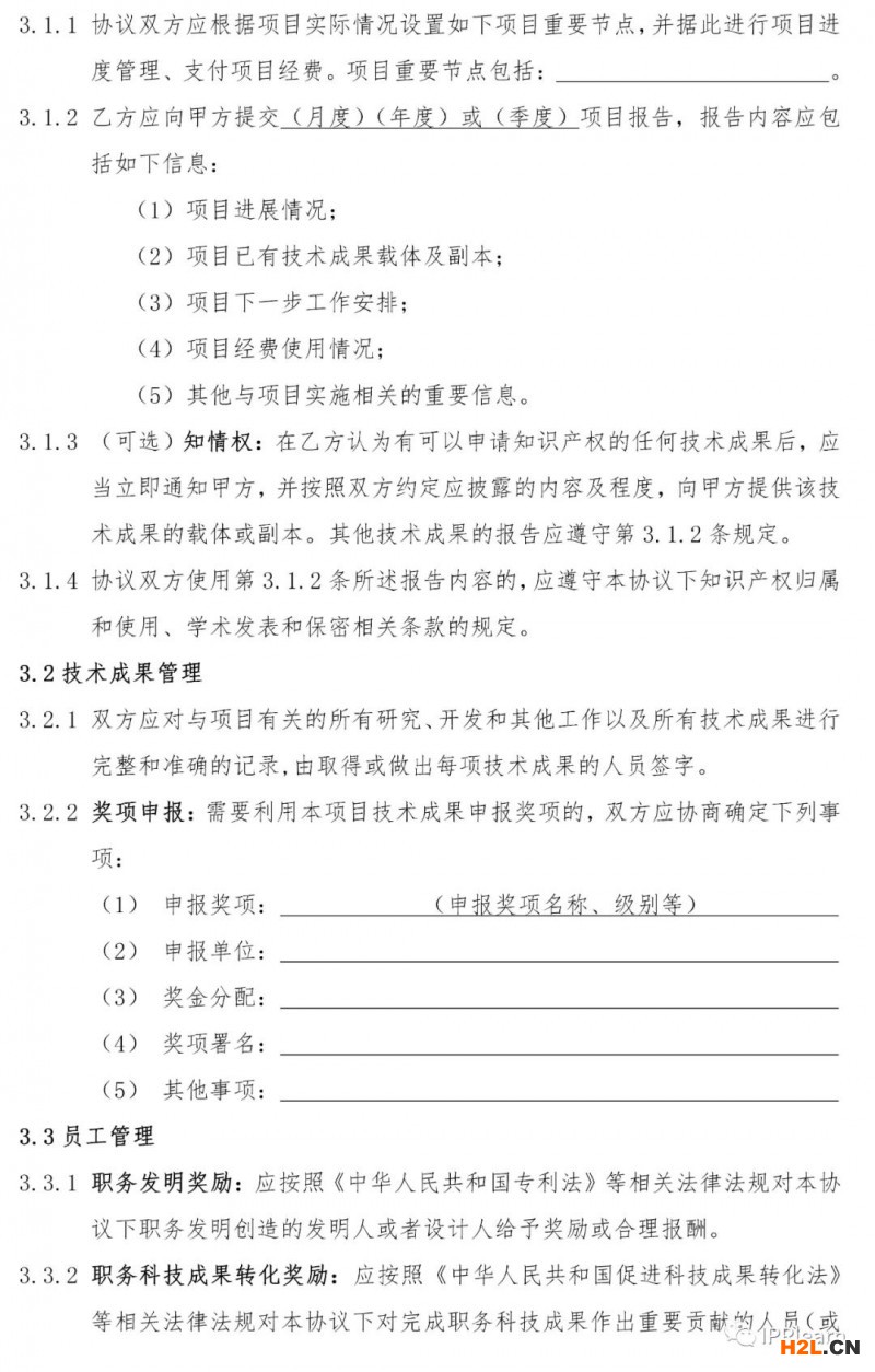 除該知識產(chǎn)權(quán)歸屬和使用等核心模塊外,三種情形下協(xié)議的其他內(nèi)容模塊基本相同,包括合作內(nèi)容、項目管理、經(jīng)費管理、技術(shù)指導(dǎo)、保密責(zé)任、爭議解決等十幾個模塊,并重點對其中可能存在的知識產(chǎn)權(quán)風(fēng)險進行了約定。《指引》作為原則性的指導(dǎo),產(chǎn)學(xué)研各方在簽訂協(xié)議時可結(jié)合實際情況靈活使用,除直接使用協(xié)議部分條款外,還可以將知識產(chǎn)權(quán)、保密等模塊嵌入高校院所和企業(yè)原有協(xié)議范本使用。