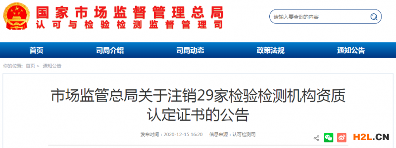 市場(chǎng)監(jiān)管總局關(guān)于注銷29家檢驗(yàn)檢測(cè)機(jī)構(gòu)資質(zhì)認(rèn)定證書的公告