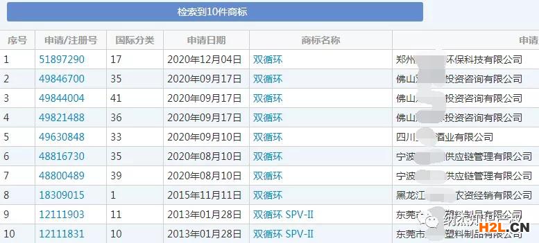如下圖所示,目前申請(qǐng)“雙循環(huán)”商標(biāo)的僅有10件。