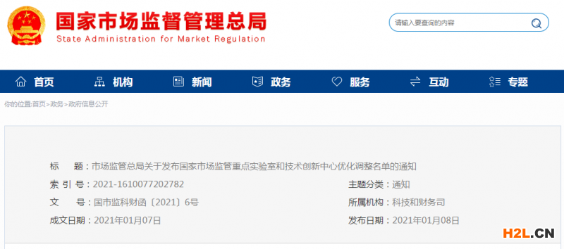 市場(chǎng)監(jiān)管總局關(guān)于發(fā)布國(guó)家市場(chǎng)監(jiān)管重點(diǎn)實(shí)驗(yàn)室和技術(shù)創(chuàng)新中心優(yōu)化調(diào)整名單的通知