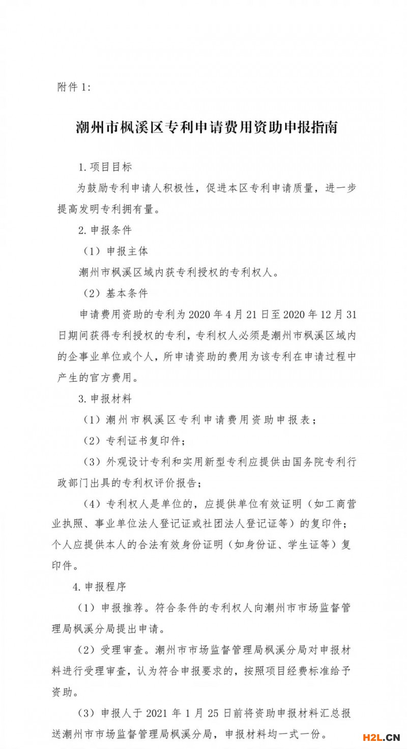1.《潮州市楓溪區(qū)專利申請費用資助申報指南》